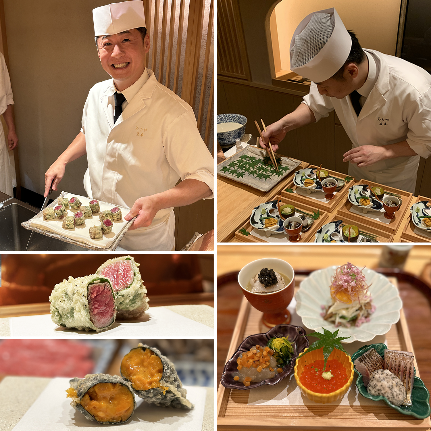 Tucked away in Azabu-Juban, Takiya, led by Chef Tatsuaki Kasamoto, redefines tempura as fine art. He trained at the Ritz-Carlton’s Hinokizaka before opening Takiya in 2015, bringing a sparrow-light batter, safflower oil, and gilded attention to every ingredient.