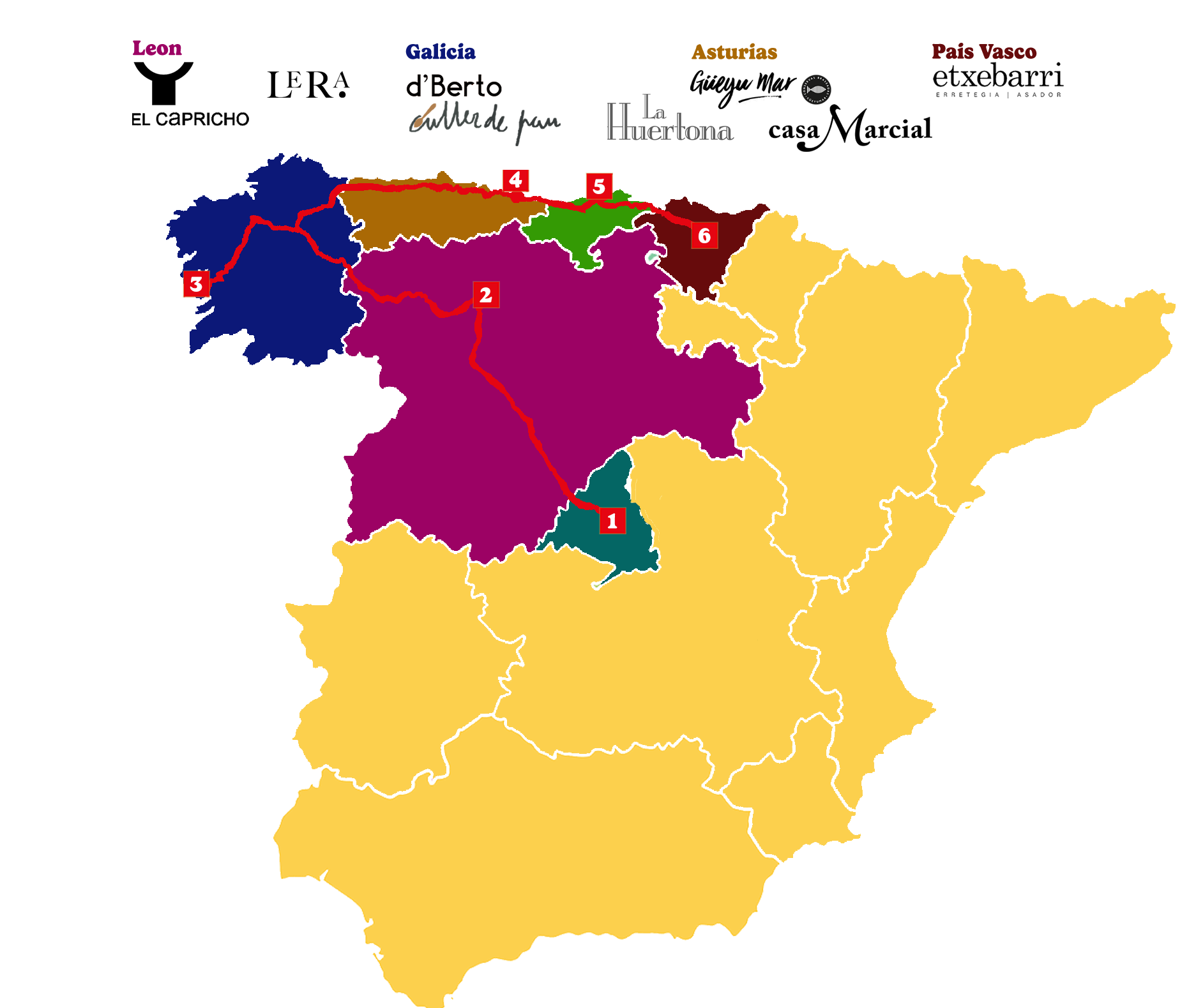 Regions and cities explored: Castilla y León, Galicia, Asturias, Cantabria, and the Basque Country.