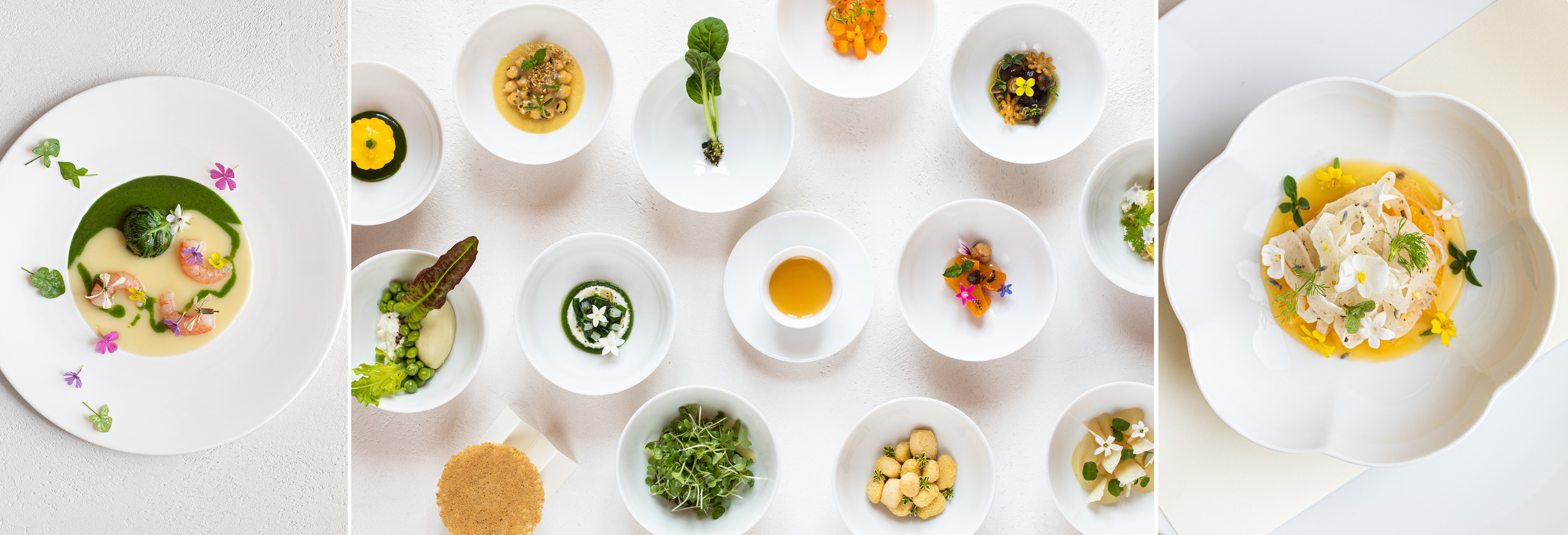 His masterpiece is a living mosaic: the “Insalata 21, 31, 41, 51…”, a botanical pilgrimage of a hundred leaves, herbs, and blossoms plucked from his biodynamic garden at dawn. When autumn’s mist descends, the room transforms into a temple for the White Truffle. With the humility of a true master, Crippa steps into the shadows, allowing the “White Gold” to speak its ancient, earthen truth. It is more than a meal; it is an intellectual romance between the precision of the hand and the soul of the land.