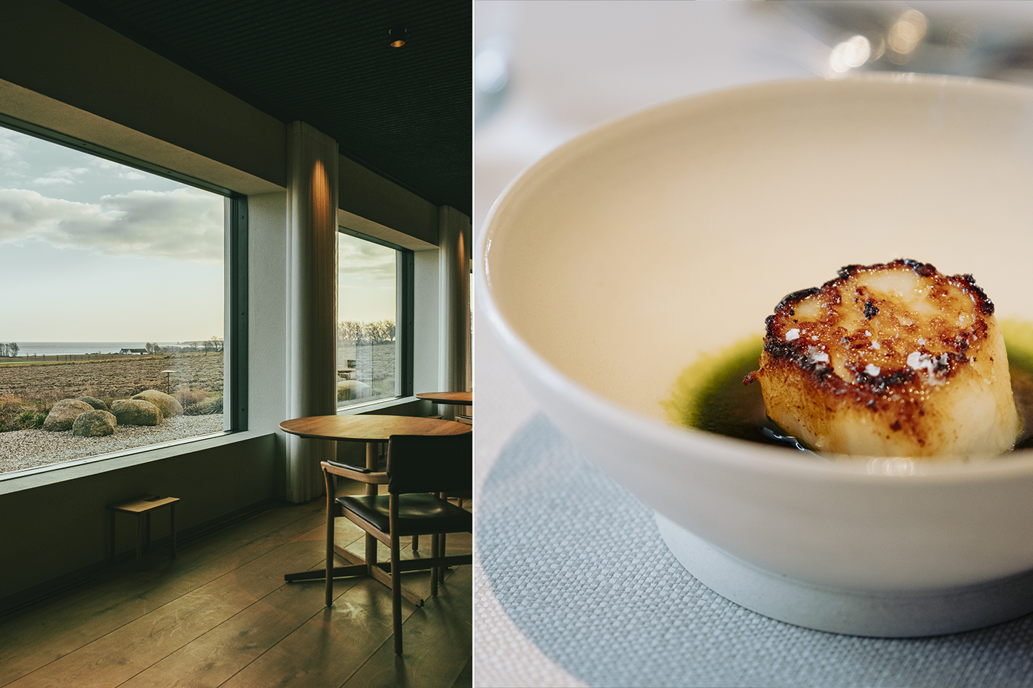 His cooking reflects the wild beauty of Bornholm, where smokehouses, sea air, herbs, and forests shape the identity of every dish.